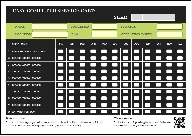 Easy Computer Service Card [ Get in mail a printable pdf file and MP4 step by step video guide ]